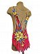Нарядный купальник для художественной гимнастики без страз. Без рукавов, без застежек и молнии. Фасон выгодно подчеркнет силуэт гимнастки. Декорирован аппликацией росписью.